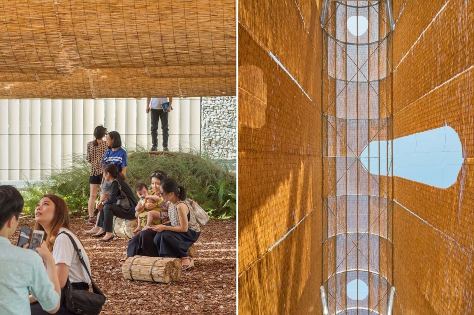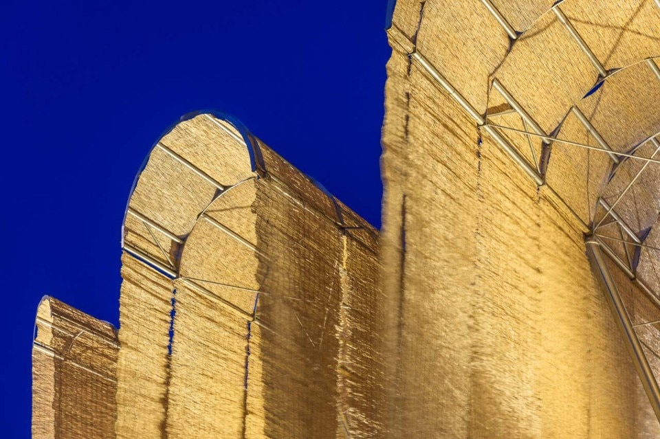 Korea’s National Museum of Modern and Contemporary Art in Seoul host the serpentine shape of large flexible reed blind created by Society of Architecture for YAP MMCA.