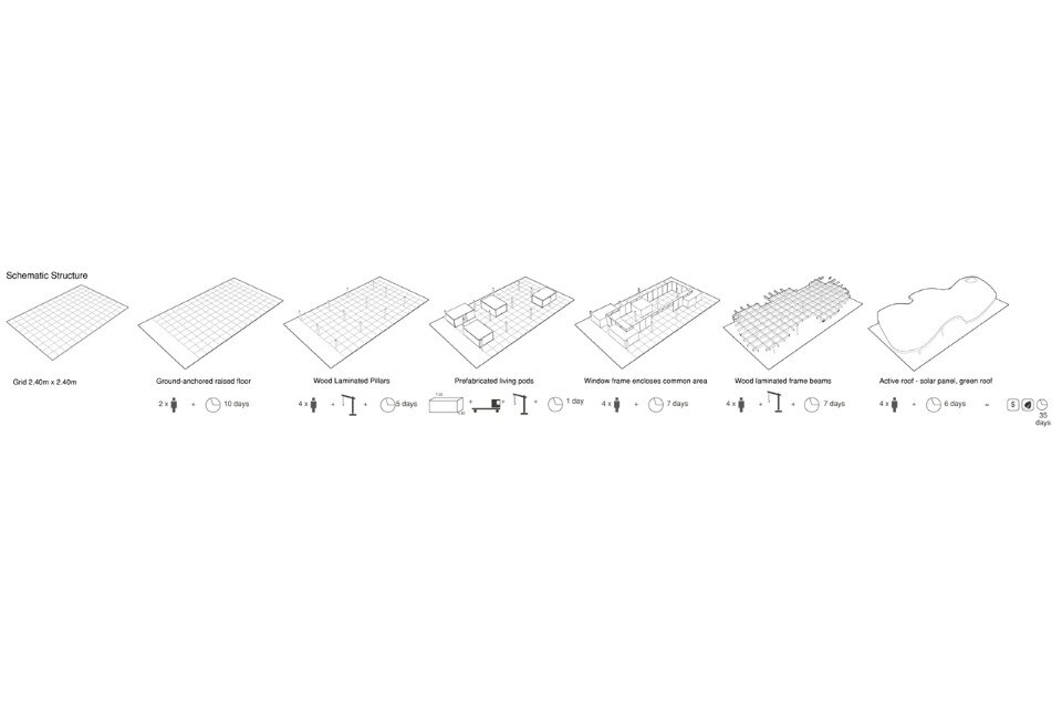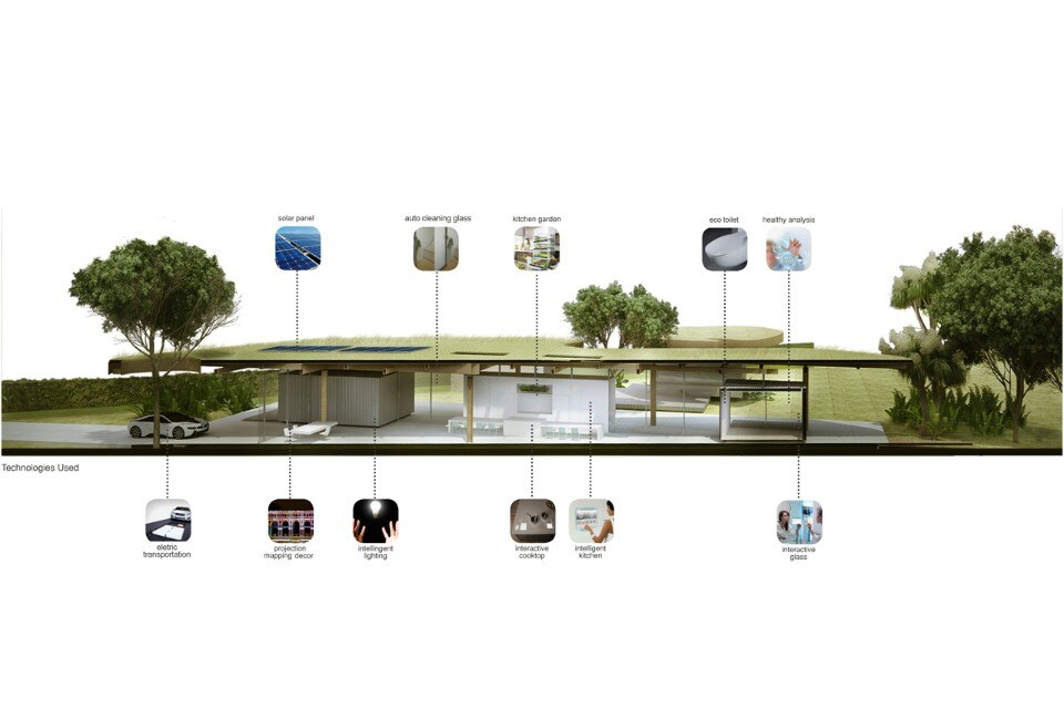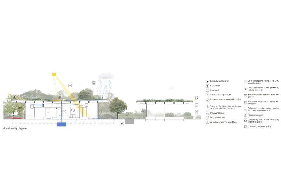 It sought to seek alternatives to answer contemporary concerns on sustainability, flexibility and adaptation of architecture to present and future challenges. It is not about forging concepts for a theoretical future; on the contrary, the objective is to break the cliché of a house that never becomes reality and to propose concrete evolving schemes. Existing technologies and behavioral patterns guided the project and the engagement in bringing collective consciousness for problems requiring alternative social behaviors.