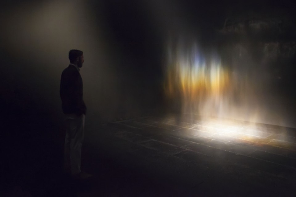 Eliasson gives light and colour the same significance as more physically tangible materials. Optical phenomena are investigated and examined. In Room for one colour (1997), a room is filled with a yellow mono-frequency light in which the eye can only distinguish yellow and black. When the viewer leaves the yellow room, an after-image in the complementary colour (blue) remains on the retina. The phenomenon is fleeting and fades away after the initial exposure. The work exists not only inside the room but is assimilated by the viewer.