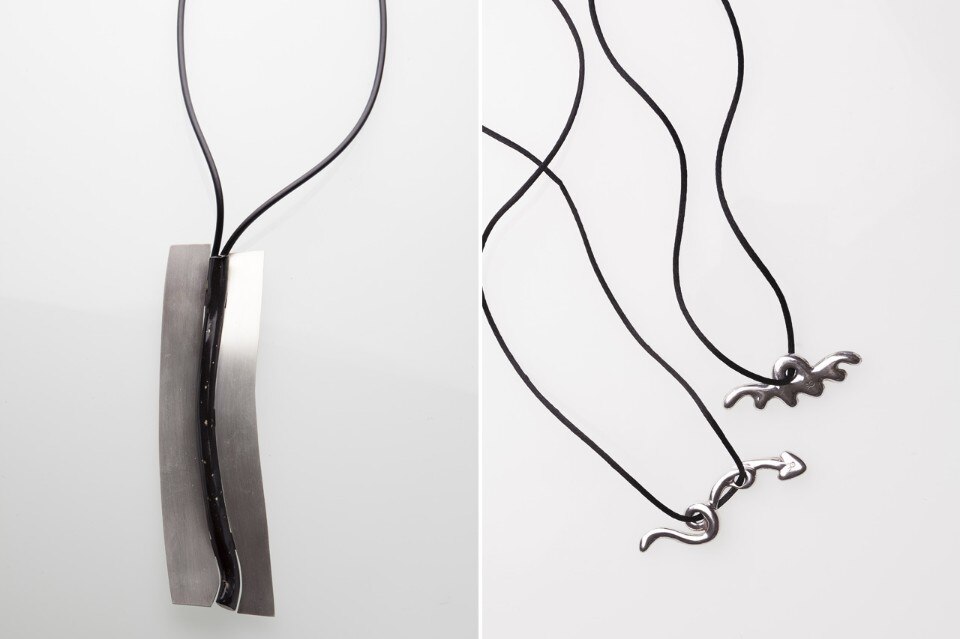 Left: Alba Polenghi Lisca, Corallo Ciondolo Calliope 2, 2005. Silver, black coral. Right: Andrea Branzi, Collezione Magic, Arnolfo di Cambio 2001, silver
