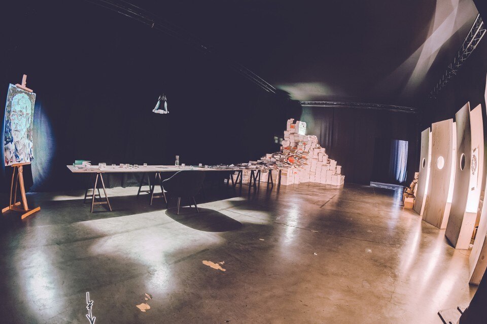 Shine is followed by the installation conceived by London-based illustrator Ian Wright, who took the Lighting Bible (the company’s massive catalogue) as a starting point. “It’s the first time that I’ve used a catalogue as raw material. So for me, the commission was a challenge to develop new methods of working. The paper has a specific character and there's a tremendous variation in colour tones. The inspiration photos could be understood as light in a kind of static, printed form. Just like a painter, I worked layer by layer to create a playful, larger than life – 90 cm wide and 120 cm tall – portrait of founder Paul Ameloot.”