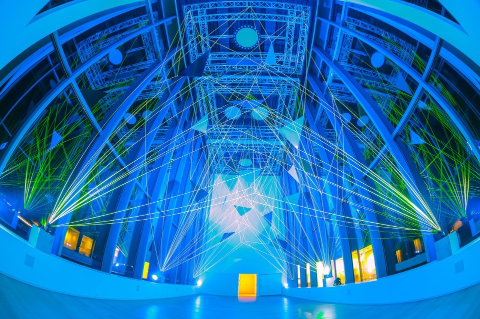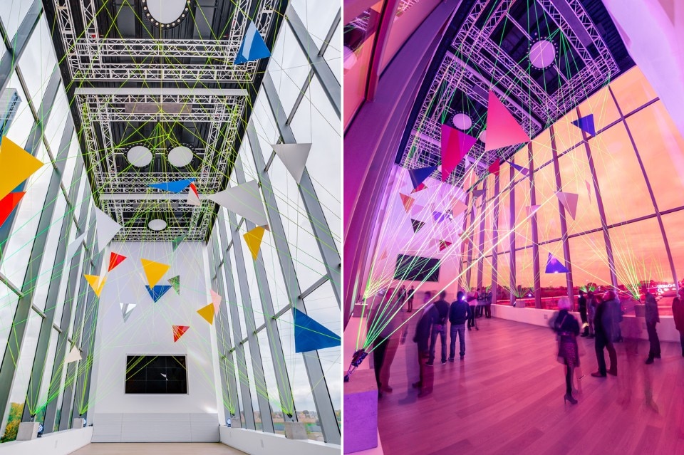 This glass volume, that forms a counterpoint for the massive black architecture of the headquarters, also hosts the first of the four installations commissioned by Paul Amellot, founder of Delta Light, to Belgian and British artists.