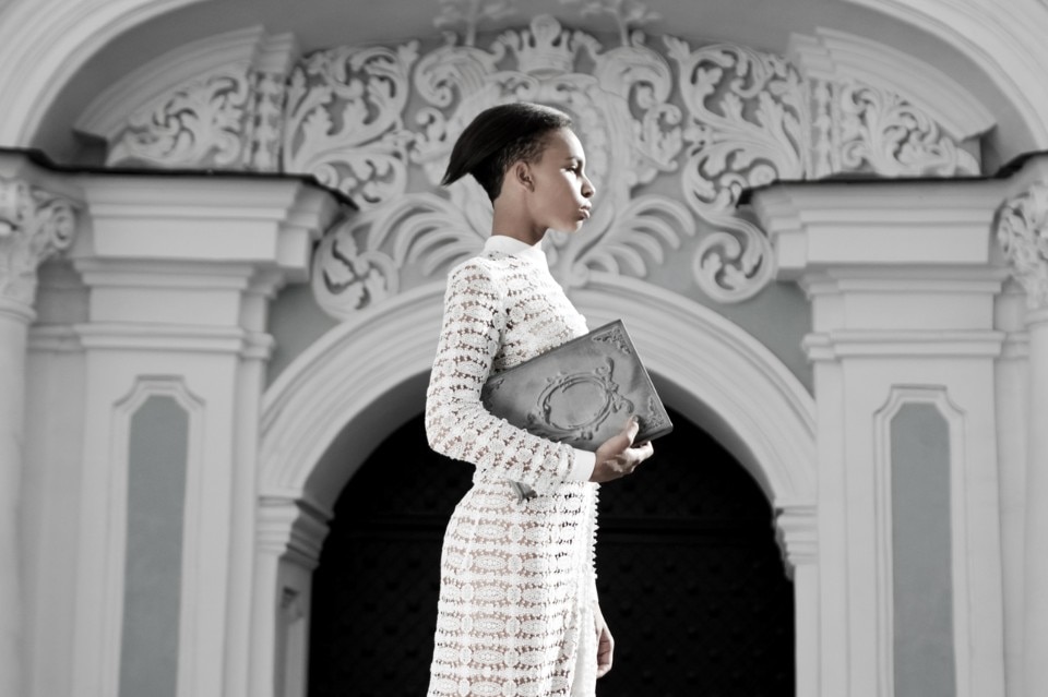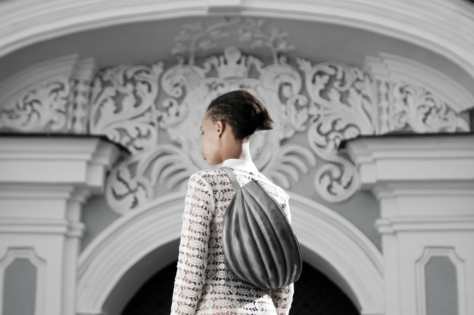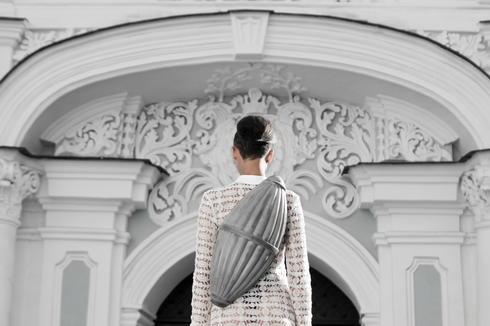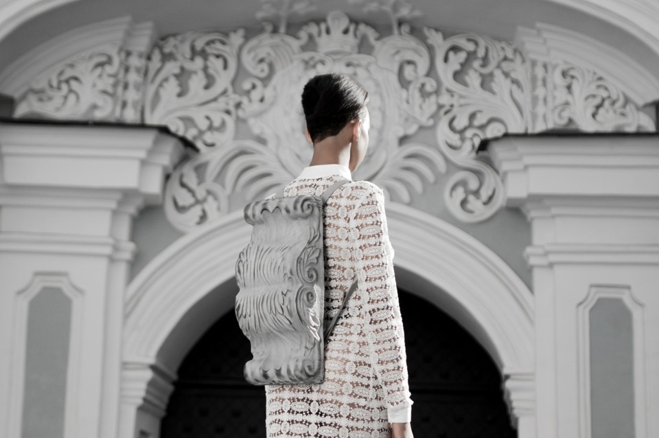The Kiev based designer presented in Paris his new bag collection Arxi that literally reproduces baroque architectural elements, one per bag.