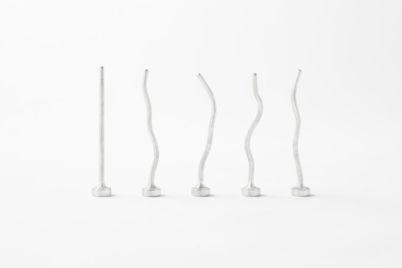 The word “nendo” itself means “clay” in Japanese. The café’s logo has been designed by taking the “n” from the nendo logo and bending it to form two “c”s. Similarly, the handles on our original mugs have been bent, or “kneaded”, by hand, giving each a unique shape. Also, the stirring sticks have been designed to stay upright on their own, and they have been made out of tin so that they gradually soften and change their form with continued use.
