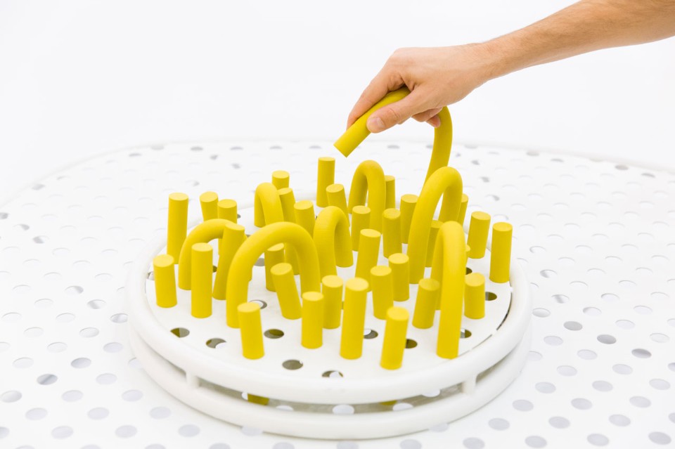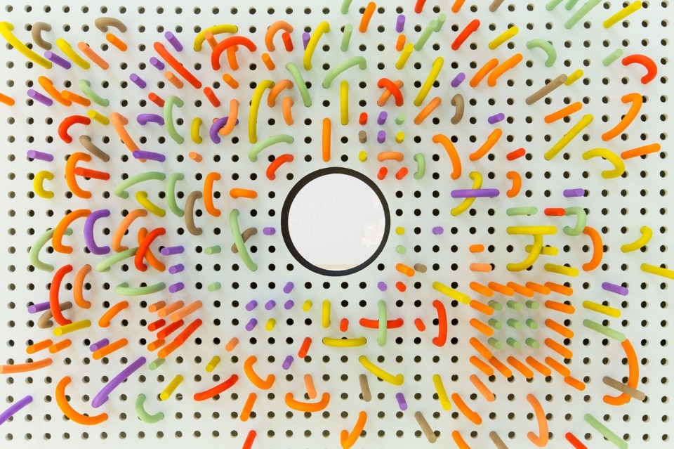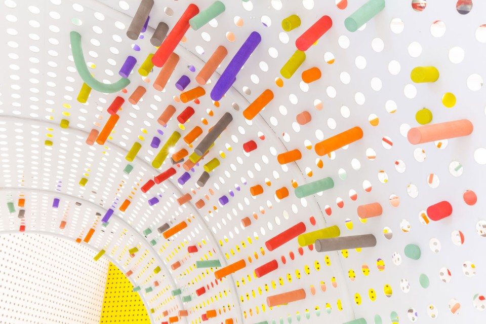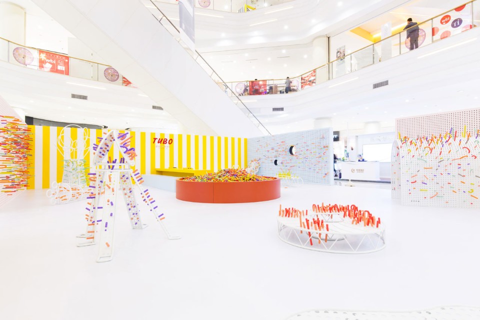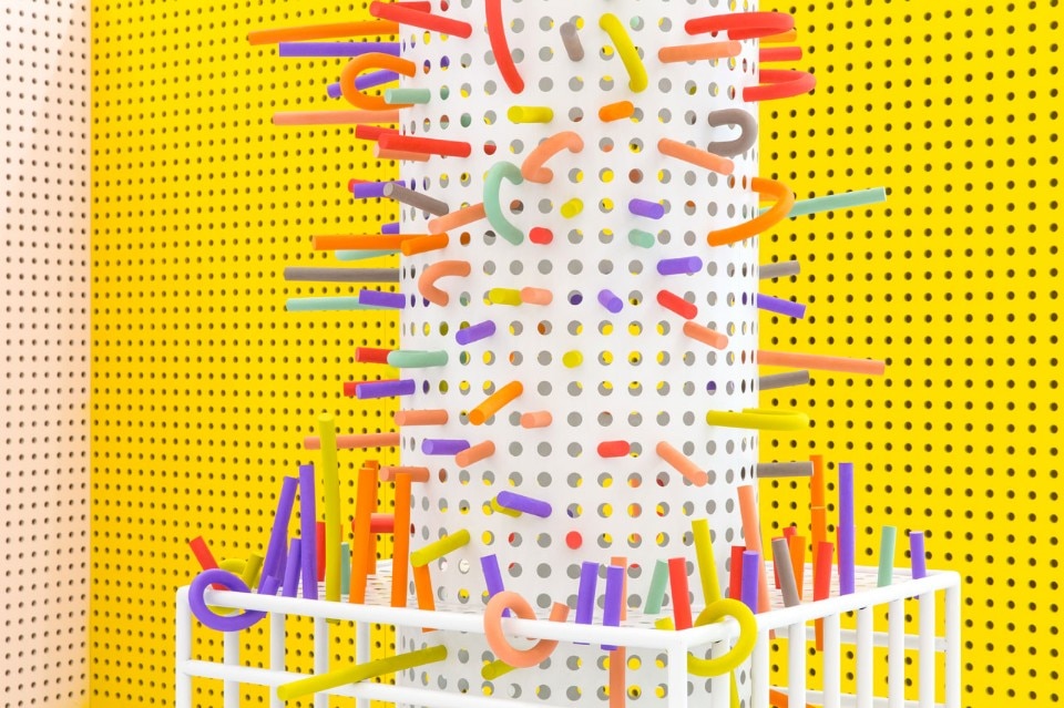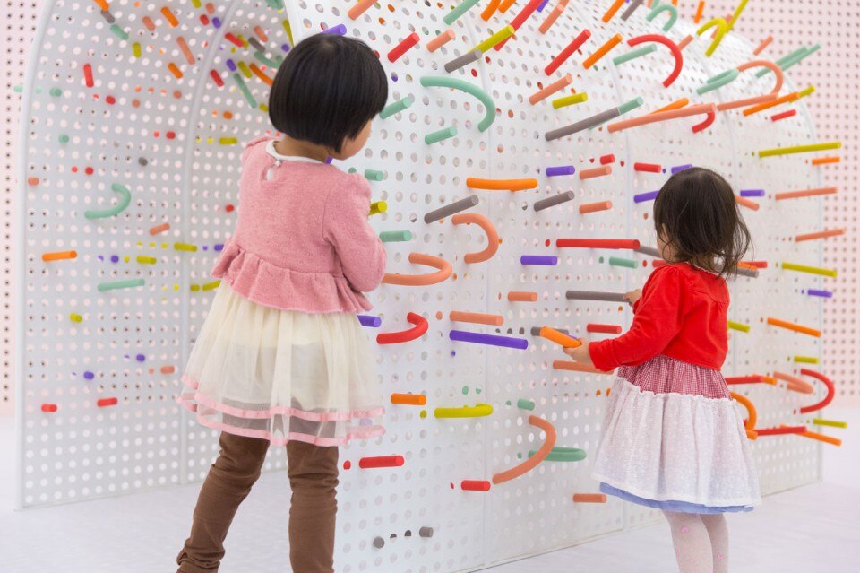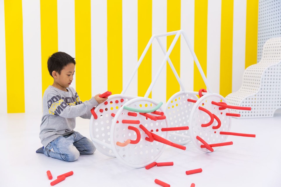 Kids are encouraged to colour the space by filling the holes of the structures using the foam tubes. They can stick the foam tubes in the holes, tie and slot them in however they like in order to create a 3D colouring effect.