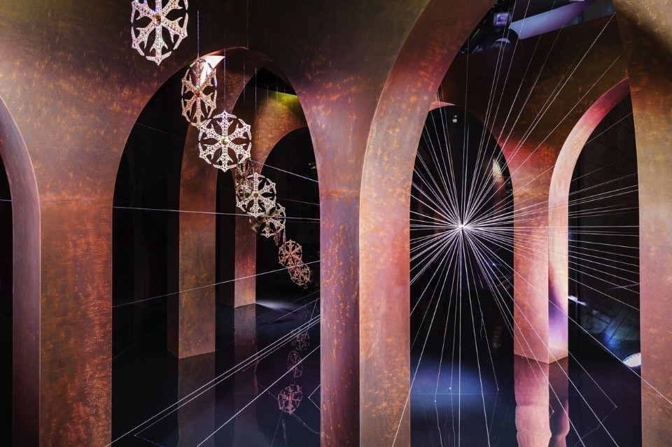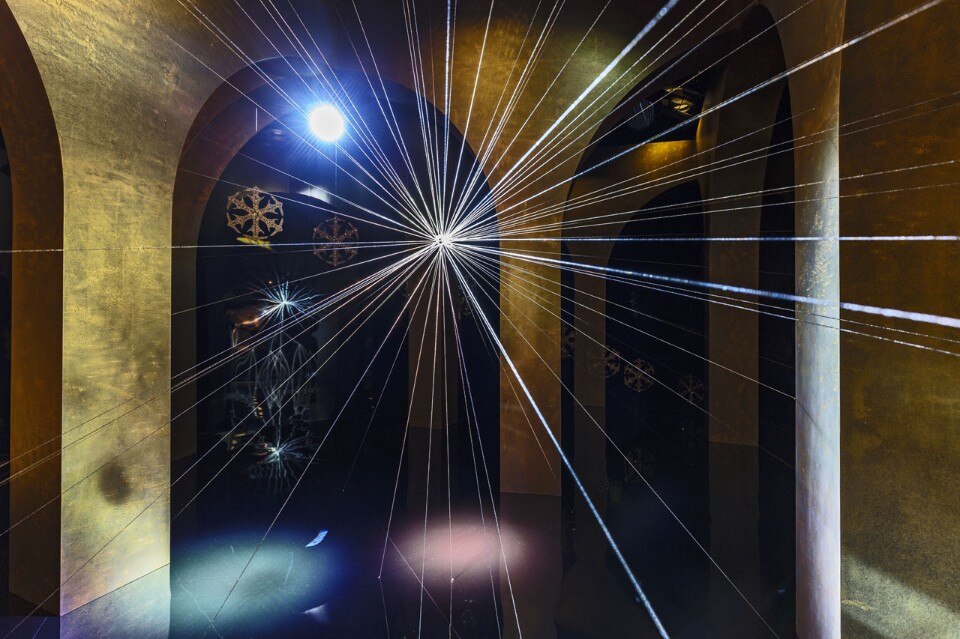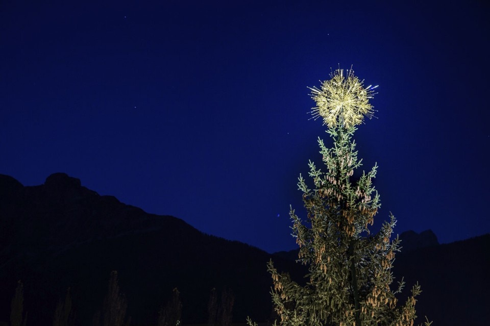 More traditional, but still amazing, are the works commissioned by Swarovski to Dutch designer Tord Boontje for three locations of Swarovski Kristallwelten (Swarovski Crystal Worlds) – the Giant in Wattens and the Swarovski Kristallwelten Stores Innsbruck and Wien: inspired by various design projects drawn from the history of Swarovski, Light Touching comprises a twelve-meter-high Christmas tree from the forests of Tyrol decorated with a luminous gold ornament and varied forms of snowflakes that are now shown in the entrance area of the stores.