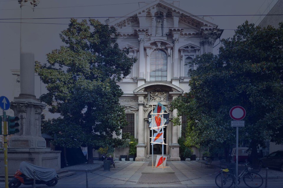For the Church of San Paolo Converso in Milan (headquarters of CLS architects) Ingo Maurer creates a totem with a 6 meters high metal structure on which are backed four LED-lit panels. On each panel Maurer has drawn a red heart, iconic form of his poetry. Each of the hearts “pulses” and lights up with different intensity, suggesting the magic of pop Christmas tree.