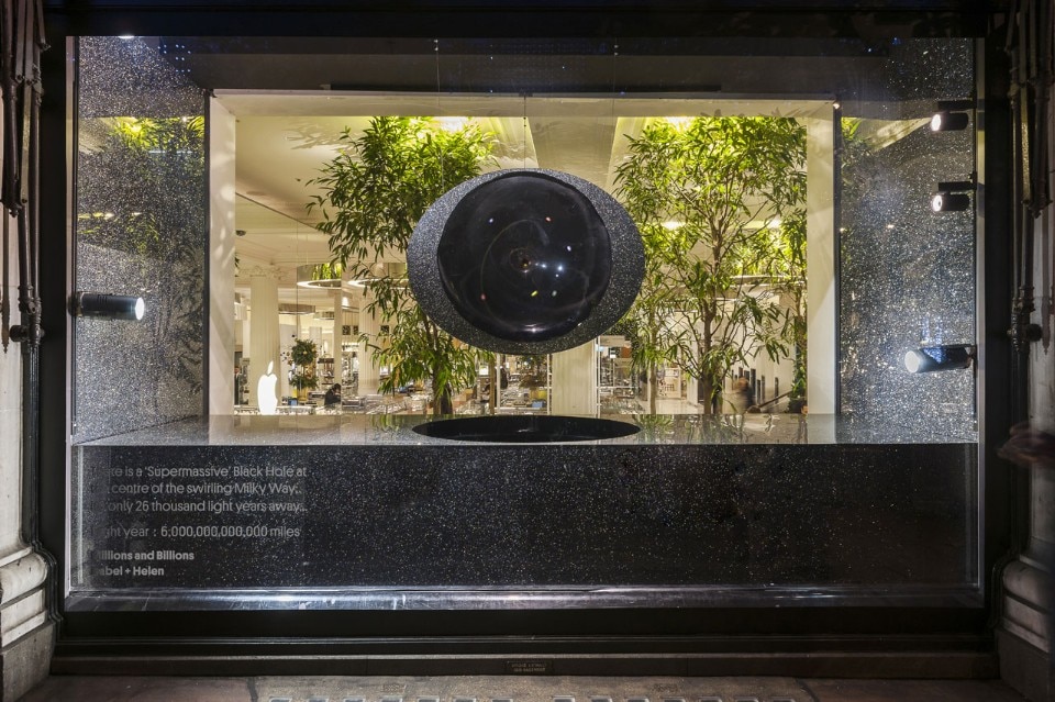 The shop windows are turned into almost theatrical scenes: La Rinascente in Milan hosts a set up by John Armleder Let it shine, let it shine, let it shine. It’s Xmas again!, a work of art that combine painting, installation and music, while Selfridges dress up for Christimas with Millions and Billions, a collection of windows designed by Isabel + Helen, exploring the incomprehensible concept of scale within our universe. Each window depicts a mind-blowing fact or inconceivable theory around the subject of outer space.