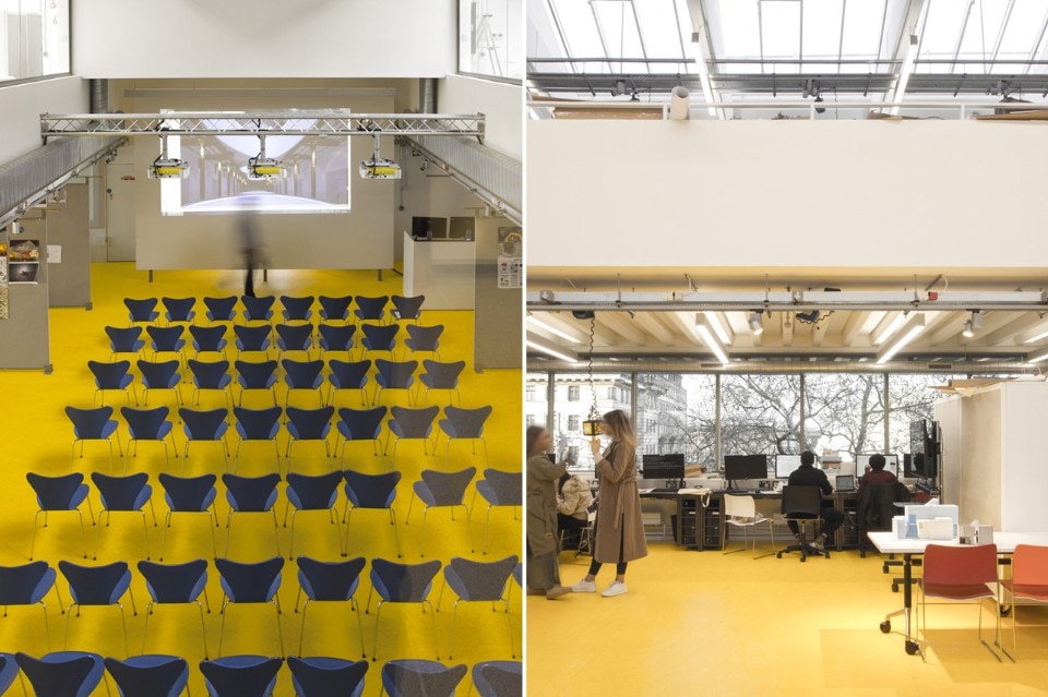 The 2,500 sqm scheme restores the studios back to their original open plan ambience with improved acoustics, emphasising the double height grandeur. Specially designed mobile storage and display modules subdivide the spaces, providing generous pin up space and much needed storage. All services have been replaced and a multifunction room is fitted out with new AV equipment, automated blinds and purpose designed suspended display panelling.