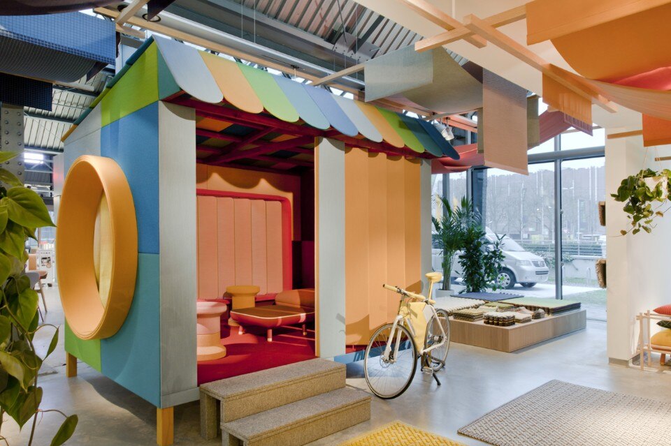 Werner Aisslinger’s Garden of Wonders in Design Post, designed for Kvadrat, is a small piece of architecture dressed as a collage in a wide range of fabrics.