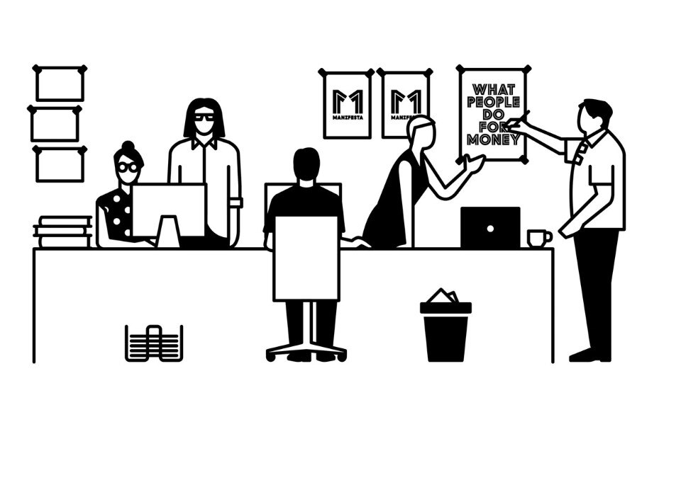 Each edition of Manifesta has featured a new design drafted by a renowned agency. Intégral Ruedi Baur won the competition for the design and layout of the biennial’s visual appearance and has been developing the look of Manifesta 11 in Zurich since summer 2015. With Jankowski’s questions: “What is the subject’s relation to his/her profession?” or “What are we working for, if not for money?” functioning as a starting point for his design concept, Intégral Ruedi Baur has explored the topic of ‘working’ and based a flexible communication system on it.