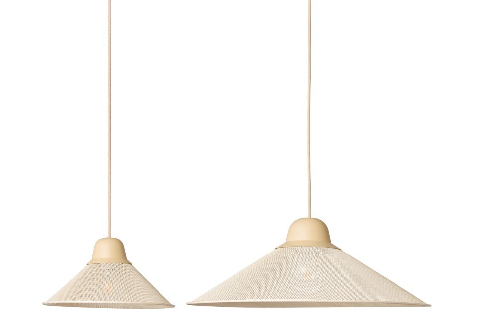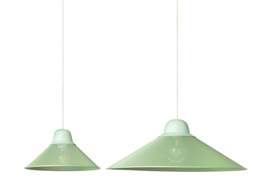 The result is a lightweight pendant lamp, with a simple and almost archetypal form, that through the metal mesh diffuses a soft and mellow light.