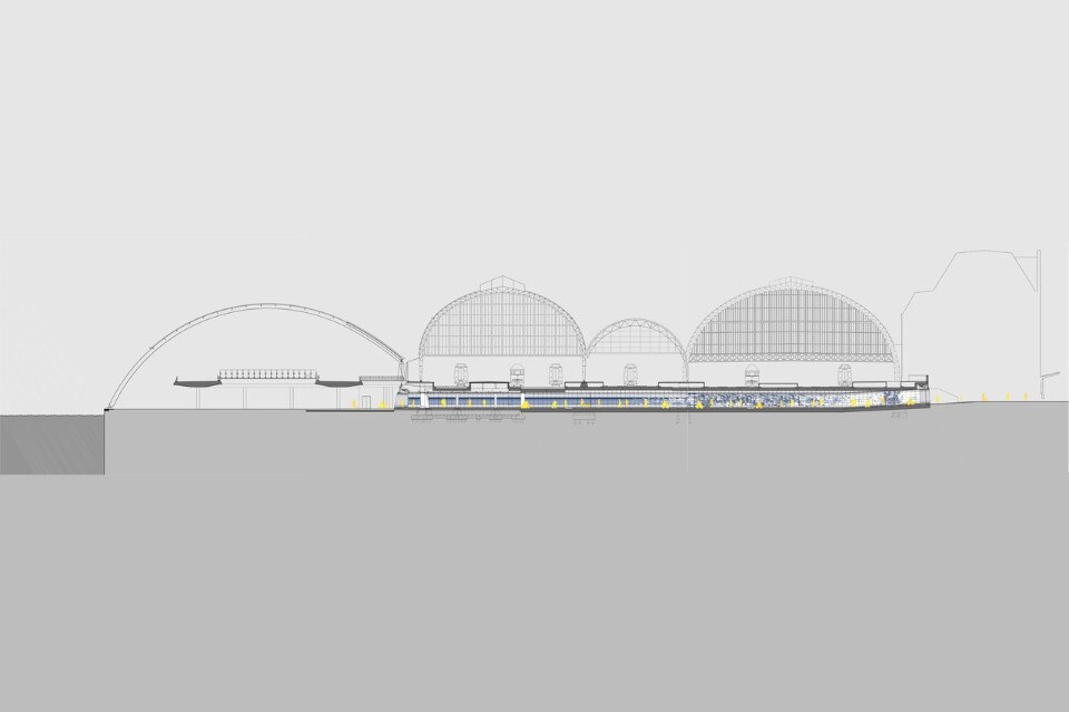 Along the footpath wall is a tile tableau designed by Irma Boom Office. The design steps off from a restored work by the Rotterdam tile painter Cornelis Boumeester (1652-1733). His tile panel depicting the Warship Rotterdam and the Herring Fleet is in the collection of the Rijksmuseum, Amsterdam. Irma Boom replaced the original crest on the stern with the Amsterdam coat of arms. The cyclist or pedestrian leaves the old historic part of Amsterdam through Cuyperspassage and heads towards ‘new Amsterdam’ in the north, or vice versa.
