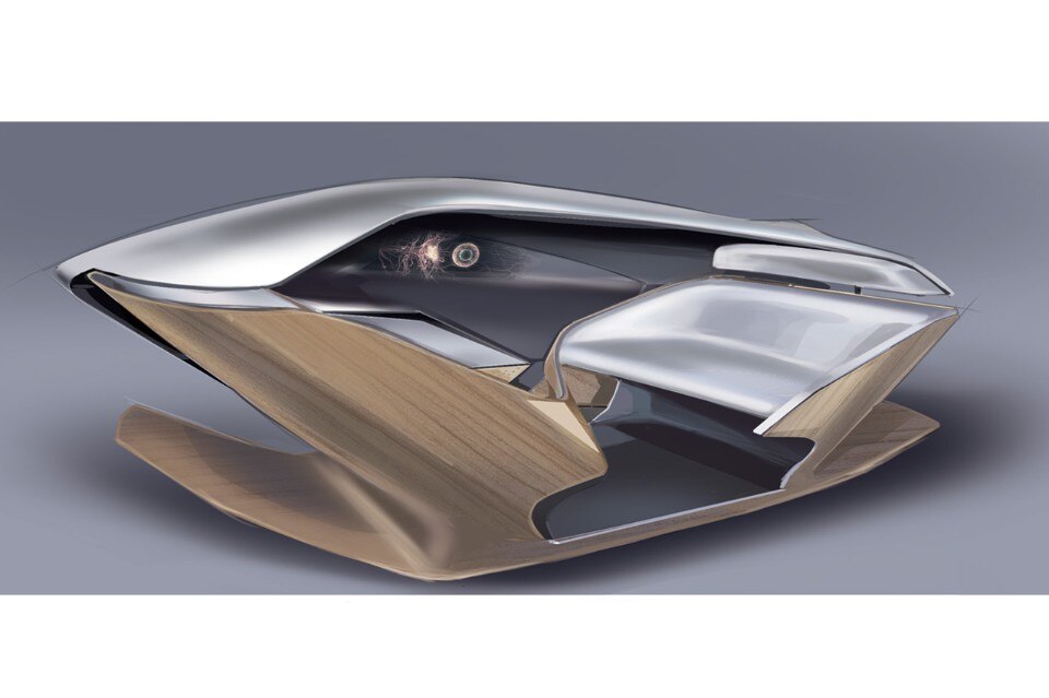 The Shiwa cabin interior surfaces are designed to project multimedia contents towards the passengers, outdoors or to create an augmented reality. The cabin is designed to bring people together, thanks to the seats configuration disrupting the traditional passenger-driver hierarchy and delineating different spaces and uses and reinterpreting the concept of conversation and interaction inside the vehicle. Shiwa envelops the passengers both physically, in their sensory dimension and in all the relational aspects among themselves and with the outside world.