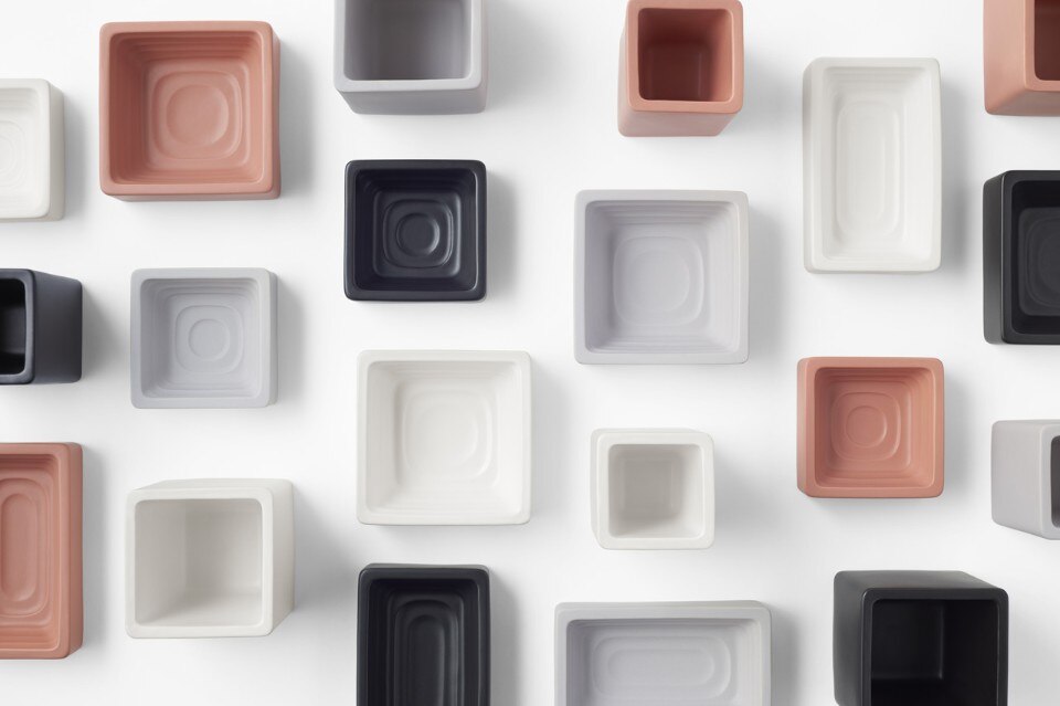 Usually, food bowls for pets don't blend in well with the surroundings in a room or on a balcony. So plant pots in similar shapes are also available to be used in