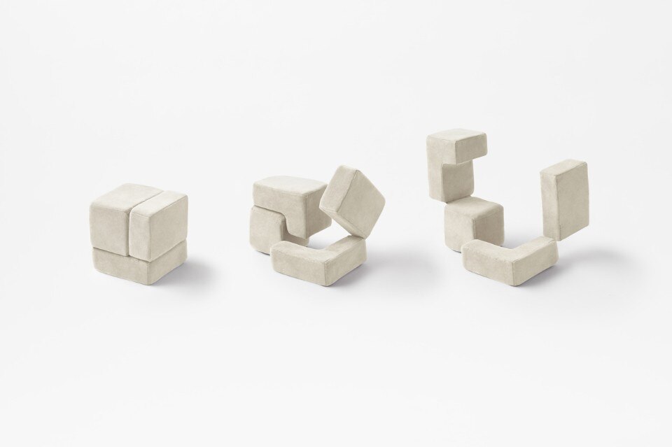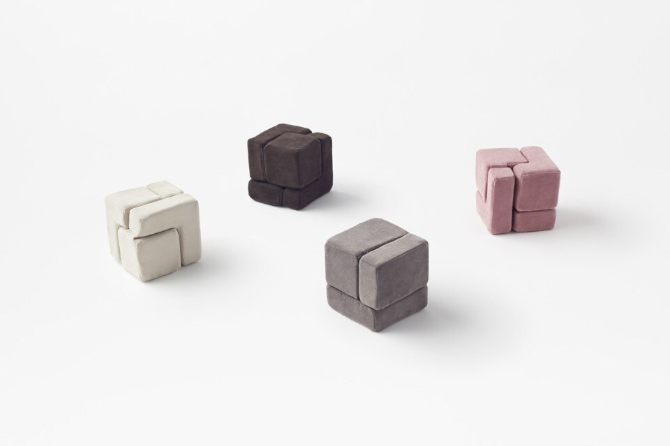 Nendo, cubic pet goods, by | n. A soft toy for dogs in a geometric shape. The toy is a cube shape when folded, but it can make other intricate shapes when unfolded.