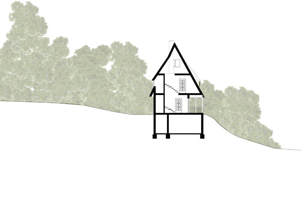 ArhiBox, Wooden house reconversion, Vultureni, Cluj, Romania. Section