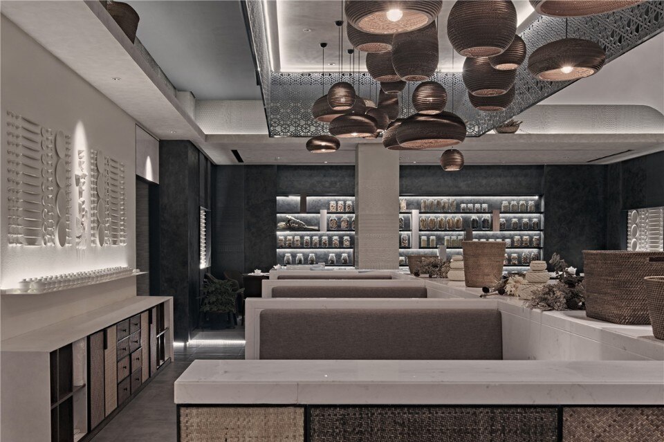 By using traditional rustic rattan elements, matching materials and modern techniques, the architects create a new definition of the traditional oriental spirit of Xi Ding, simple but delicate. This project is not only an innovation of the store style, but also an exploration and breakthrough for the total branding design.