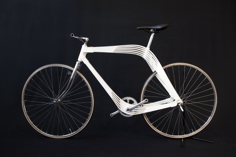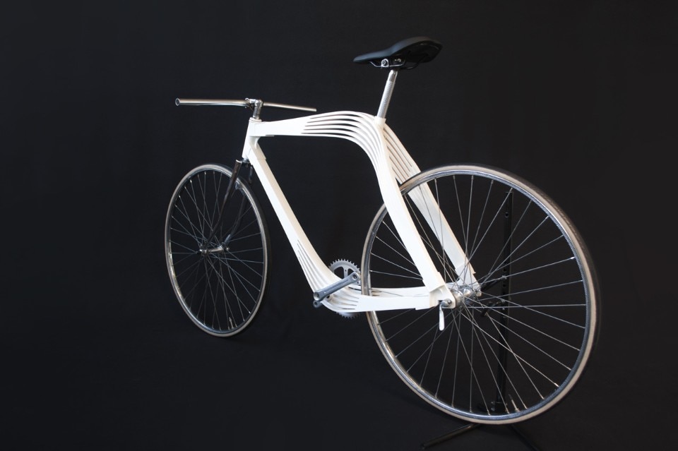 The carbon absorbs the sheer forces which are higher on both sides of the wooden block and birch gives the flexibility of the wooden block. The ratio between the carbon and the birch controls the flexibility of the wooden lamellas. Test have been made with Höller, a wood company in South Tyrol who are also Aero’s manufacturer and material consultant. All other parts of the bike can be obtained in a conventional bicycle shop.