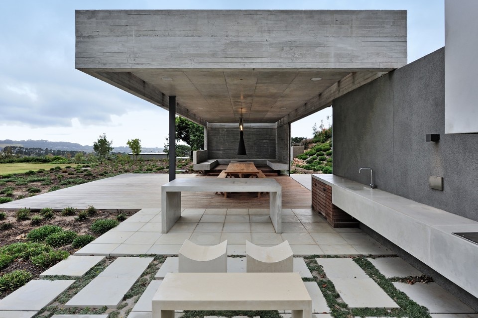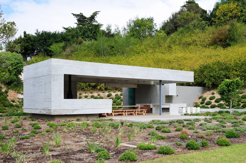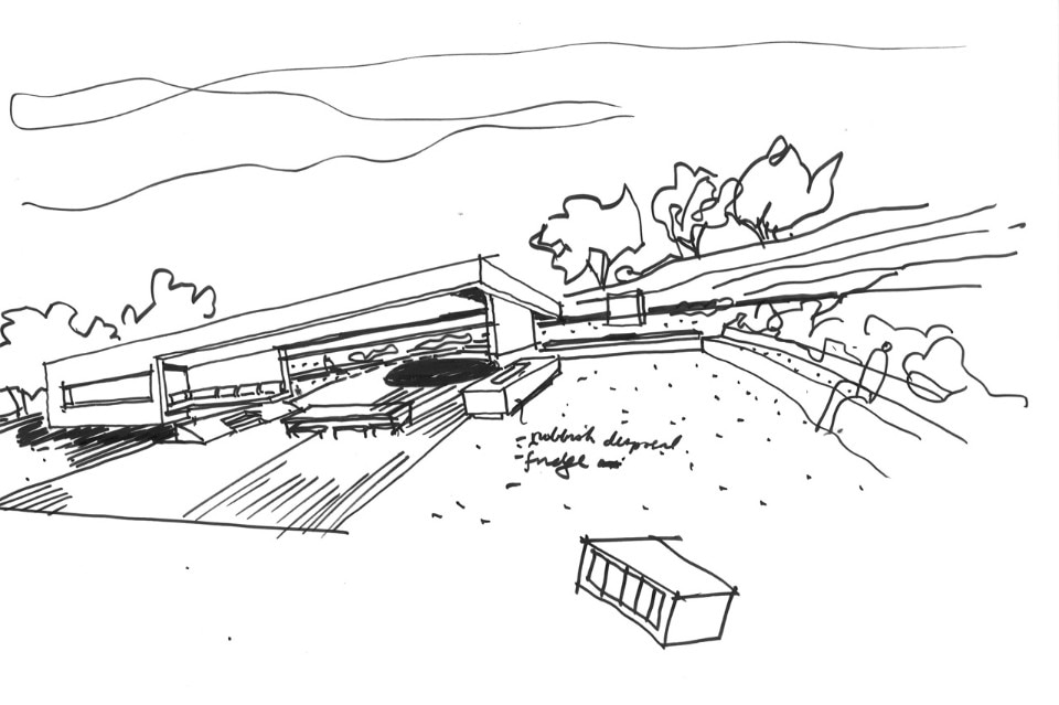 The pavilion attempts to address a complex question: how to create a meaningful dialogue with place when the surroundings are both de-natured and powerfully “natured”. This requires that the relationship between architecture, nature and modernity is carefully considered. The building is intended to be of nature: to contain a distillation of landscape which then allows it to be naturally contained by its surroundings.