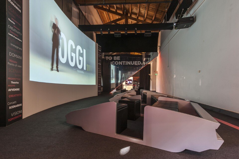 Quattroruote decided to narrate the future using the poetic of the drive-in, the place where people watched the stars (of Hollywood) beneath the stars (in the sky). Two spaces reconstruct these non-places, today virtually extinct. In the first, the video provided for visitors retraces the path of artists, intellectuals, writers and film directors from the early 1900s to the final decades of the century, illustrating how they imagined the new millennium complete with flying machines and monorails suspended in mid-air. From Marinetti to Fritz Lang, Isaac Asimov and Arthur Clarke plus the pre-visions of film directors such as Ridley Scott (Blade Runner) and Steven Spielberg (Minority Report).