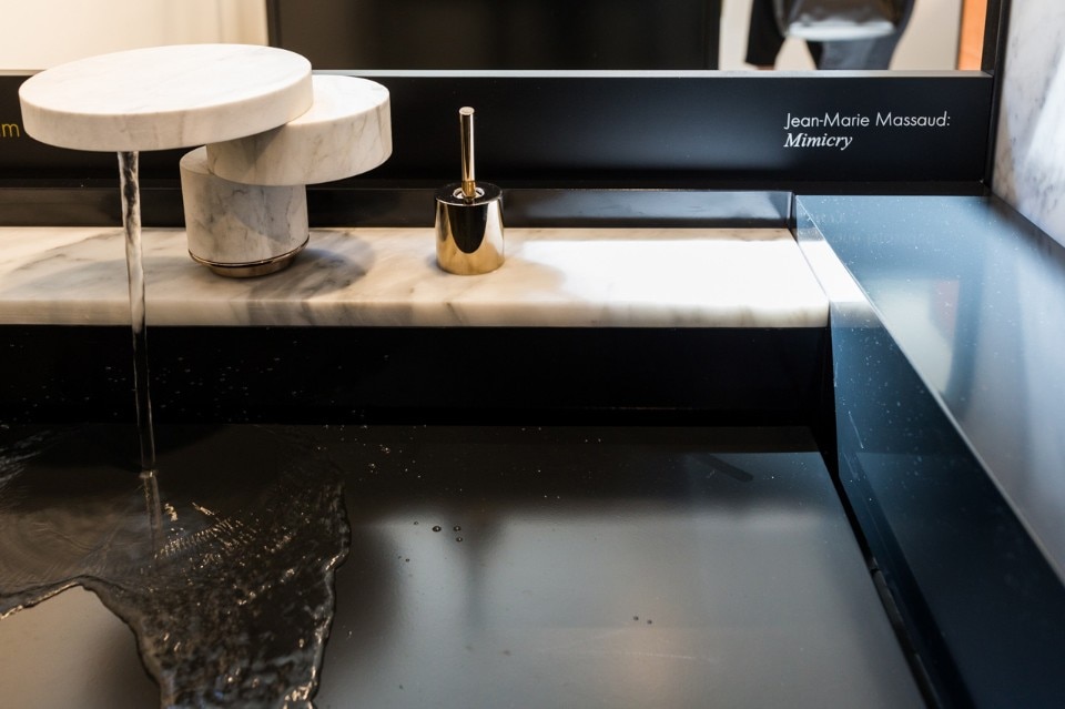 Mimicry by Jean-Marie Massaud is a concept in which natural stone meets water in a harmonious connection. Simple geometric shapes were used to create a landscape of marble that integrates perfectly into various interior design concepts. It is an homage to the significance of water.