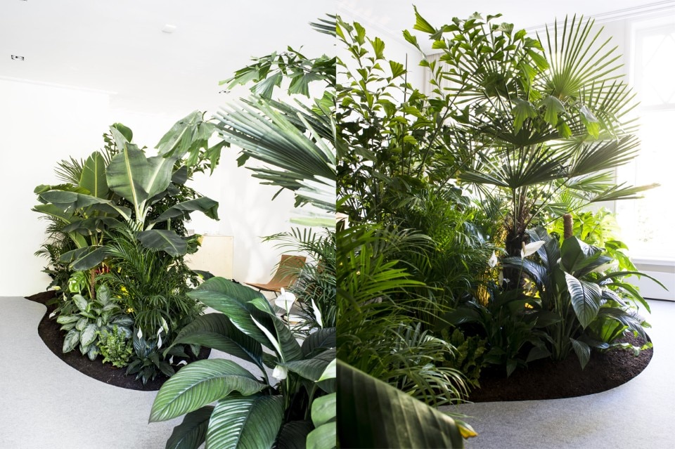 Atelier Kesteren Valerio designed a green lounge room to welcome visitors within an art gallery in Amsterdam, with plants that influence temperature, sounds and smells.