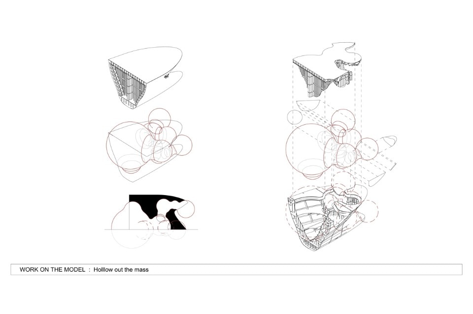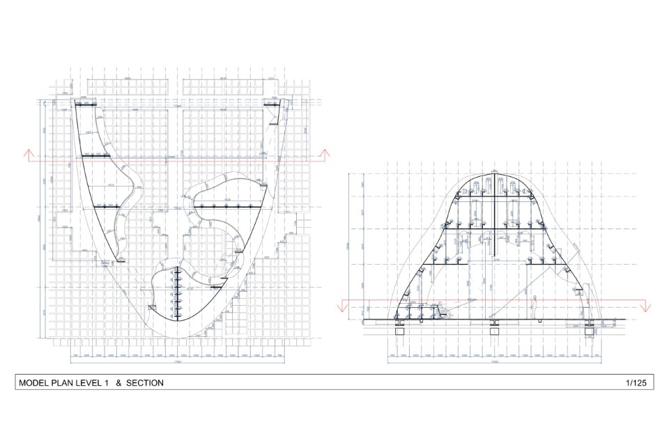 Temp’L is designed from recycled steel parts from an old ship. It shows not only a beauty of structure, but it has also a recycling purpose, ahead of any process of reusing materials. It provokes thought about beauty in our time, coming from a recent past. The architectural section of the project is drawn through the process of cutting up the old ship. The section-cut has the necessary force for the sawing action, while opening and thus freeing the space contained in the volume of the ship.