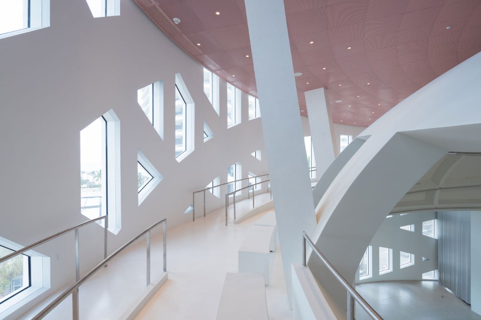 The lobby amphitheatre features Rosa Portugal pink marble floors and technical capabilities for surround projections. The upper floor assembly hall features a 12-metre-high dome with a central glazed oculus and a floor-to-ceiling window overlooking Indian Creek that can also be used for loading large scale art. A walkway that spirals up the interior wall of the Forum from street level to the top of the dome provides visitors with a range of perspectives on the space and additional seating. Combined, the balcony spiral, dome and cube have the capacity to host over 1,000 visitors. “The Forum represents endless possibilities to host a range of events – from concerts to conventions; roundtable discussion to banquets; intimate exhibitions to art fairs – all within a single evening”, explains lead designer Shohei Shigematsu. “Liberated from obligations to operate as a strictly institutional or a strictly commercial entity, the Forum presents a new typology for interaction, leveraging the ambiguous advantage of Faena’s redefinition of culture”.
