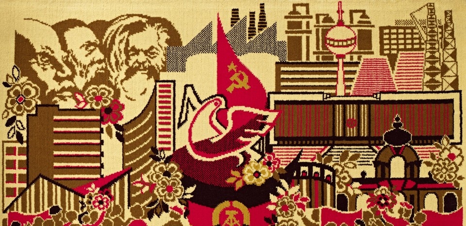 The exhibition at Aedes in Berlin focuses on the political statements and the craftsmanship of tapestries from the GDR, which depict scenes from political and proletariat life.