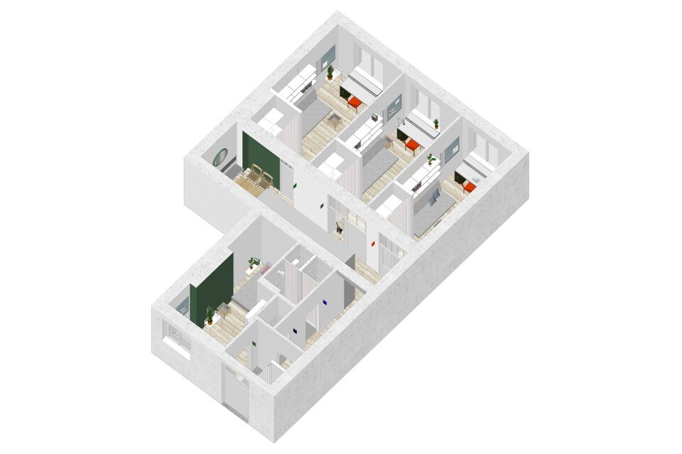 Adam Wierciński Architekt, Students apartment, axonometric view