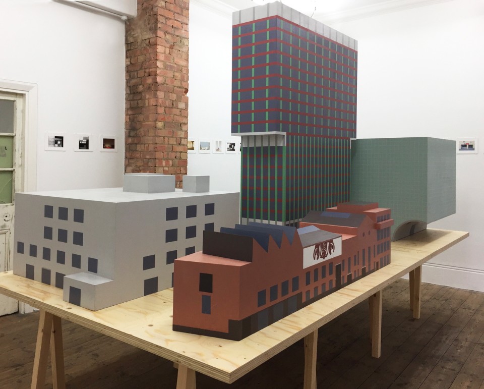 The 1:50 models in pastel colours belong to buildings the architects worked on during the last few years. Their focus lies on the exterior: the facades are at, windows and doors are marked by coloured surfaces. Because of these details, the models have a strong pictorial quality, while at the same time their spatial dimension is underlined by thick layers of paint. Exhibited together on a large table, the models show a kind of imaginary Caruso St John-city. In Adam Caruso’s words: “The buildings that are represented in the models are very different, but we have used only five colours to represent all of their details. This serves to bring together their diverse forms and scales.”