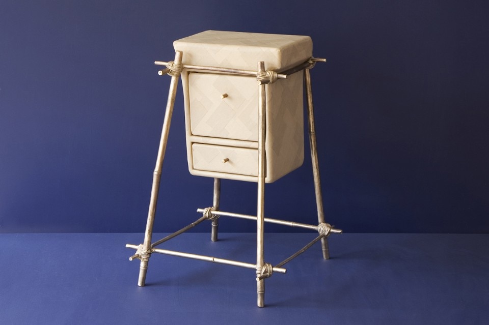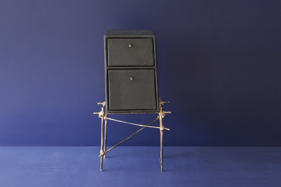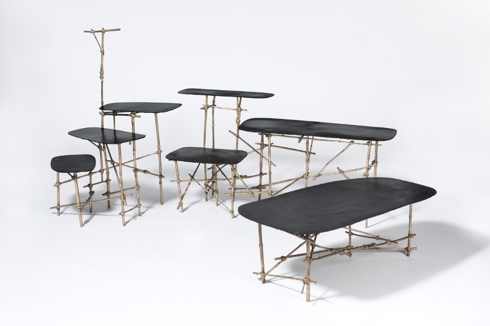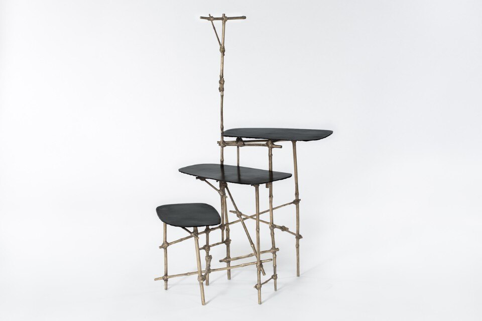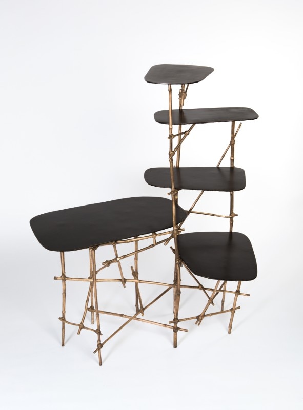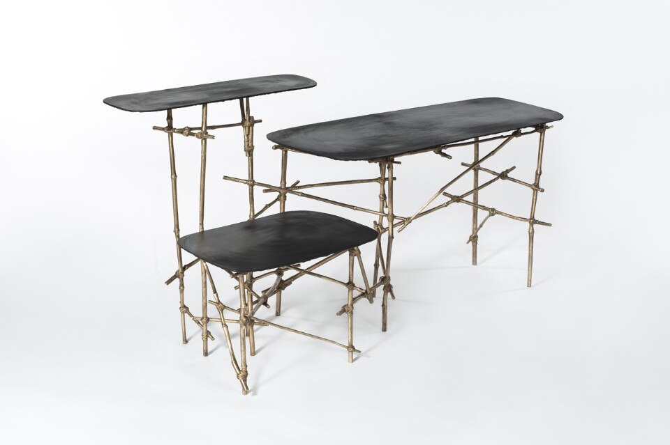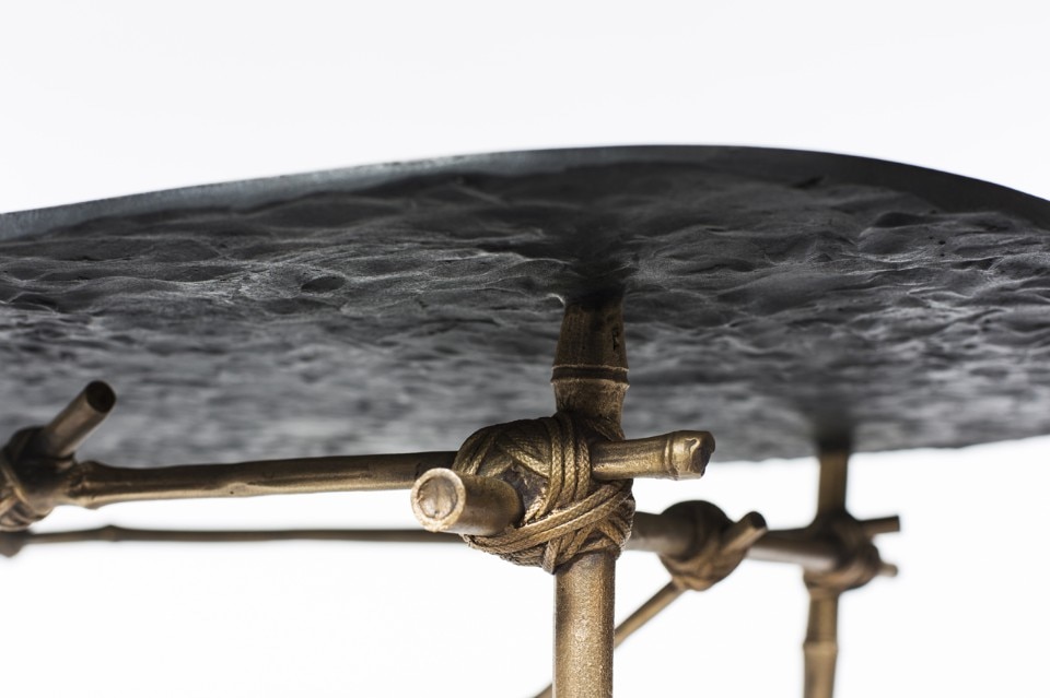 The first set of works produced consisted of a variety of storage units made from gum-paper wrapped structures with bronze frames. The frames were assembled by binding together bamboo rods and wound string, and then submerged into solid bronze using the traditional lost-wax technique. The collection evolution landed into a series of pieces that harness the values of traditional, timeless disciplines, while challenging our perception of process. Recent works are now cast entirely in bronze and finished with polished natural bronze and gun-black patina.