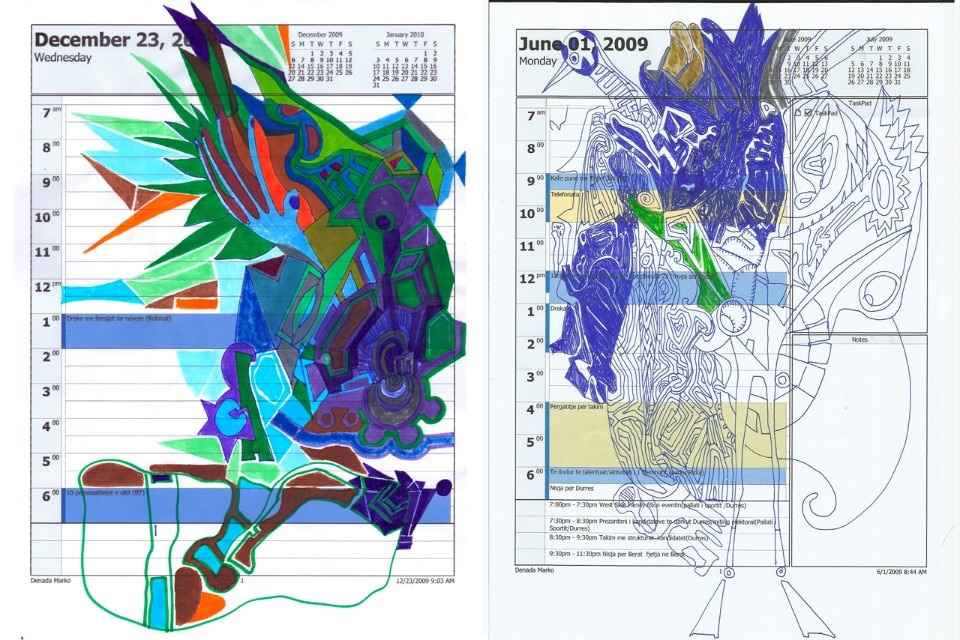 The exhibition will consist of drawings, sculptures and wallpapers, which unfold in the gallery’s spaces with no break in continuity, bringing the atmosphere of his office in Tirana to Florence, and ends with the projection of the video produced by Anri Sala in 2000 to testify Tirana’s great renewal project promoted by his close friend, Edi Rama. Through these works, one feels how Rama blends his aspects as an artist and as a politician, dilating his art to the political reality, reaching a point in which these two fields have become indiscernible for him. In fact, he has stated how he continues to paint during meetings or work calls and how, at the same time, this acts as a method of concentration and abstraction.