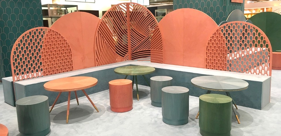 Featuring symmetry, texture and a muted colour palette, Jade Serenity is a place to relax and reflect, heightening a sense of balance and harmony, and re-energising. With dyed Italian veneer, marquetry and solid brass inlay applied by master craftsmen, Cafe Jade Serenity features pieces available through the remarkable Shamsian Collection, in collaboration with artist Shamsian himself.
