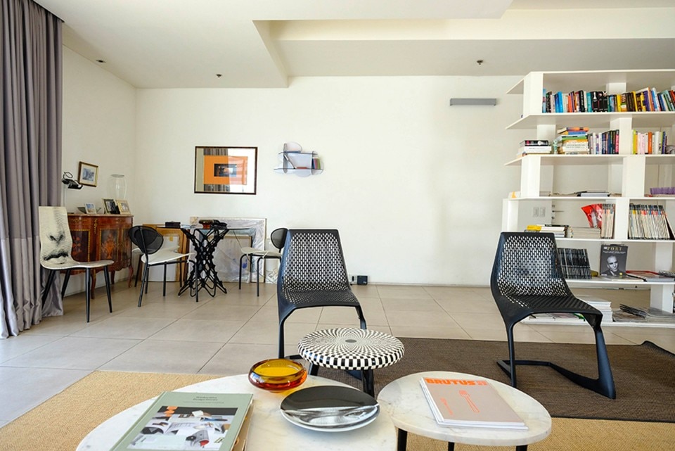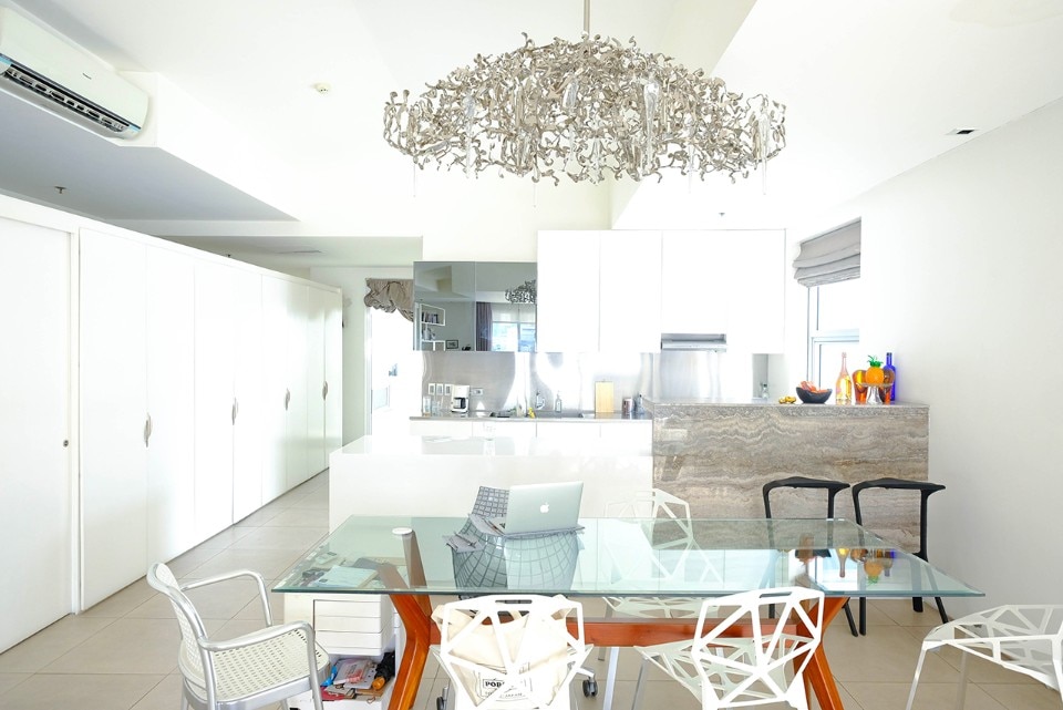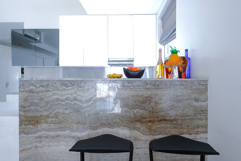 Contrasting to the post-industrial neighborhood, the apartment has an all-white exterior with minimalistic geometries. Pared-back with highly utilitarian materials like steel, is used to highly functional to hyper decoration. Ordinary materials give a familiar and informal setting to the apartment. Inspired by the city that surrounds them, interiors are a mix and match of stuff combined with subtlety and that tell a story. A monolithic partitioning multimedia shelf links living and dining areas. The apartment features large format windows, allowing natural light to illuminate the internal spaces and bounce of the unfolding interior with lightness.