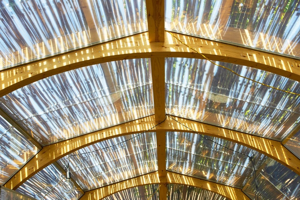 The pavilion one rethought use of nature’s willow, which in interaction with the urban context and other more high tech building materials such as ETFE, underlines the capabilities of nature’s building blocks. The design filters the light and creates a lively, changing play of light and shadow which, in interaction with wood creates a warm ambience. With the natural values at the site and the surroundings, the pavilion appears strong and recognizable among the other grandiloquent buildings at the plaza.
