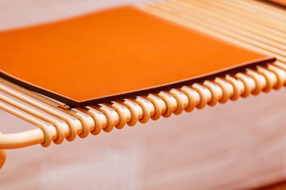 The many sophisticated new ideas include Karumi by Álvaro Siza: two stools (triangular and square) and a bench produced by Japanese masters who have combined carbon fibre and bamboo to give rise to an extremely robust but lightweight material mix; the low Aes table by Barber & Osgerbyinvestment cast bronze, a monolith resembling a metal beam or rail-track; and the Pierre Charpin’s lacquer and leather trinket trays. The beautiful final touch is added by wallpapers by Turin illustrator Gianpaolo Pagni.