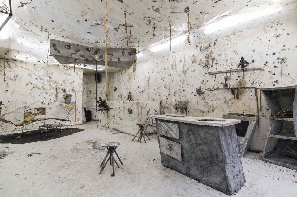 Top: Jenna Bliss, Poison The Cure, 2017. Still from HD Video, 30 min. Courtesy of the artist. Above: Fenixo installation at Dartington Hall, Devon, 1980. Photographer unknown. Courtesy of the Estate of Monica Ross