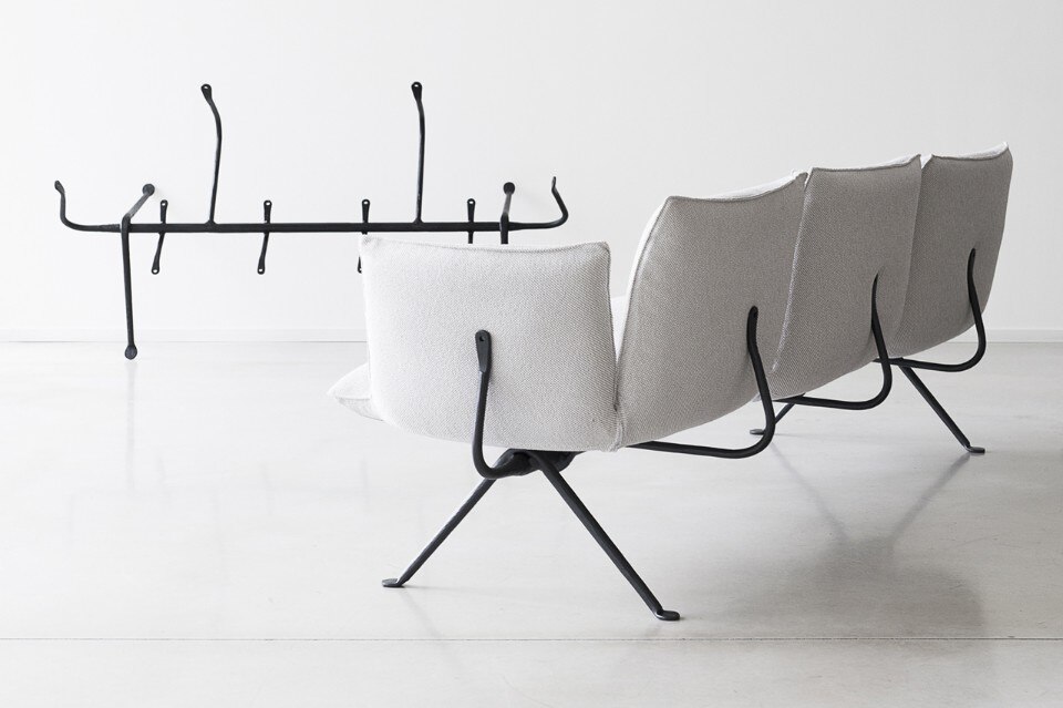 The products in this collection feature a typical wrought iron finish that makes them living design objects, and their distinctly industrial feel is guaranteed to create interesting contrasts between Italian design and traditional craftsmanship. This year’s addition is a two-seater bench and a collection of upholstered pieces: an armchair, an ottoman, two and three-seat sofas, all featuring the distinctive wrought iron structure.