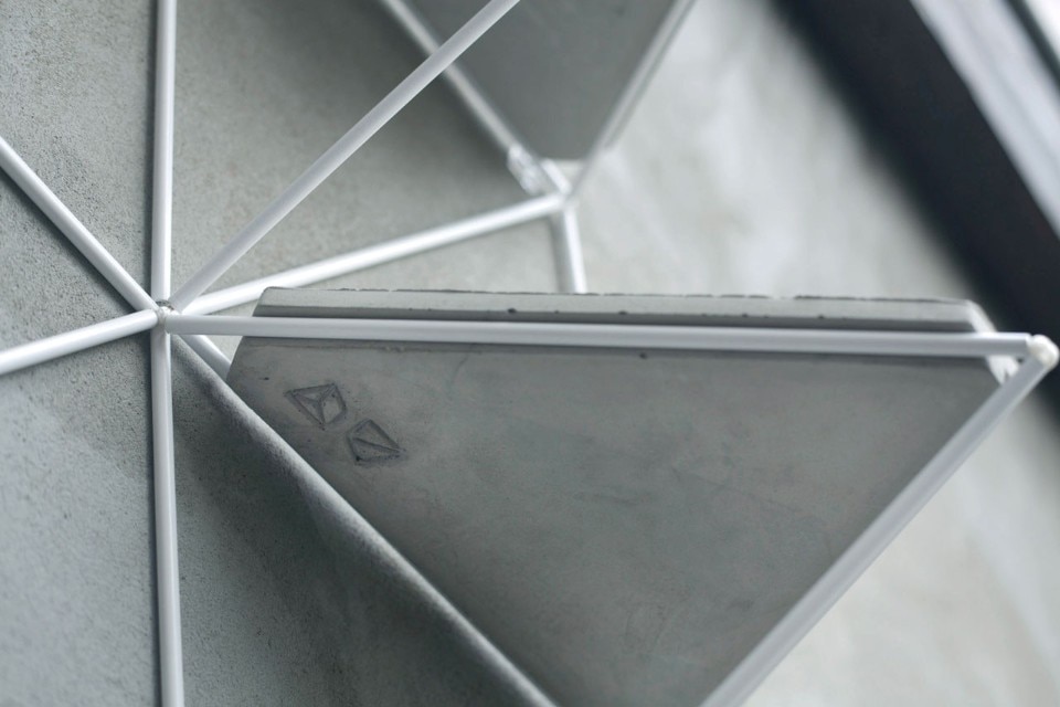 The structure is made of steel tubes that are not welded, but connected with a polypropylene string, which makes the structure flexible and gives advantage on packaging and storage. Two triangular concrete bases per module support the plants, naturally fitting the frame with no need of screws or other interference on the peaces, reinforcing one of the main characteristics of the sisters design.