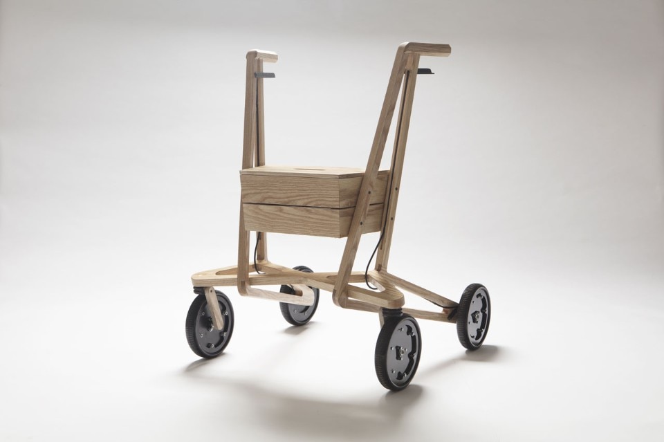 Designed for his own father who needed one, the walker is meant to be an extension of people’s personal style and appearance, instead of being a solely functional support aid on wheels. The walker has a light frame and it is possible to sit on it. The storage space on top is inspired by a fruit crate that is functional, yet sturdy. This version is still a working prototype, but production can be crowdfunded through a campaign that just started.