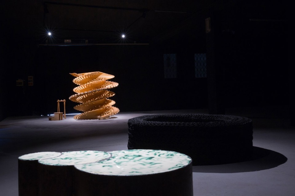 Kawita Vatanajyankur investigates the condition and obligations of women in contemporary society, by videos with strong performances of female bodies engaged in difficult balancing acts. Anon Pairot looks deeper into the meaning of everyday objects, with the parody full size model Changrai Ferrari car, made out of rattan by skilled Thai craftsmen, or with the iconic rendering of rice sacks from his family memories. Invisible Designs Lab. plays with matter and sound creating an extraordinary living sculpture, Kwangho Lee matches materials and forms in unusual puzzling objects, and Gabriel Lichauco creates an outdoor Magazines Lounge taking inspiration from street markets culture.