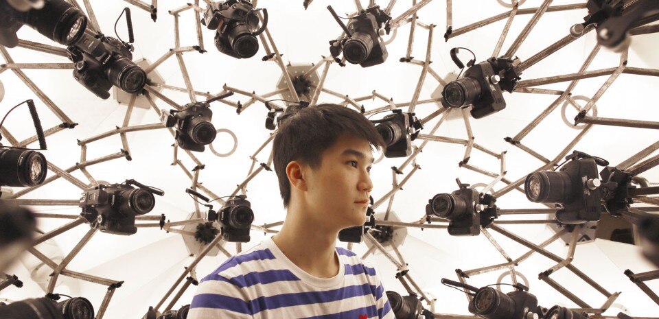 Folding panels that are lit from the interior enclose the structure of the 3d Copypod to ensure a shadowless photography environment. Digital models are constructed from the photographic data to produce high resolution 3d prints. With the snap of a camera even subjects in motion can be captured in high quality and full color.