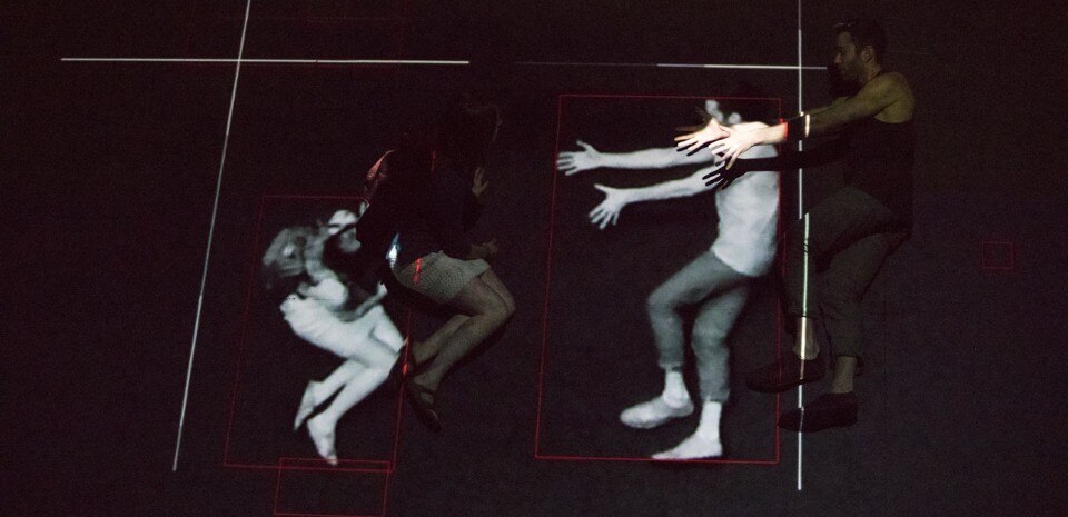 The artists conjure up an environment that envelops visitors and transforms them into active elements in the work. Visitors make their way through the Armory’s bunkers and are plunged into darkness until they encounter a 5-foot high bluff filling the cavernous space of the Drill Hall. Their movement is recorded by infrared cameras, broadcast to a global online audience, and fed back into the installation. The visitors’ image is projected back onto the floor, becoming interrupted by shadows formed by surveillance drones that periodically survey the Drill Hall. The experience inverts the fairytale of Hansel & Gretel— instead of purposively leaving a trail to avoid getting lost, the surreptitious tracking of visitors makes it impossible to hide their location.