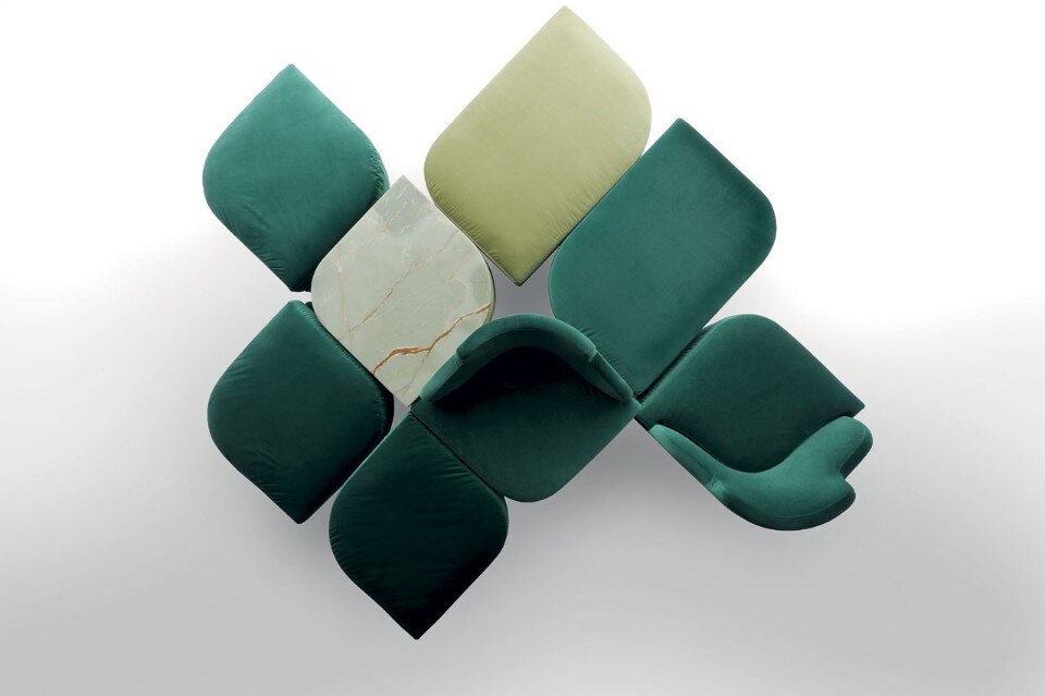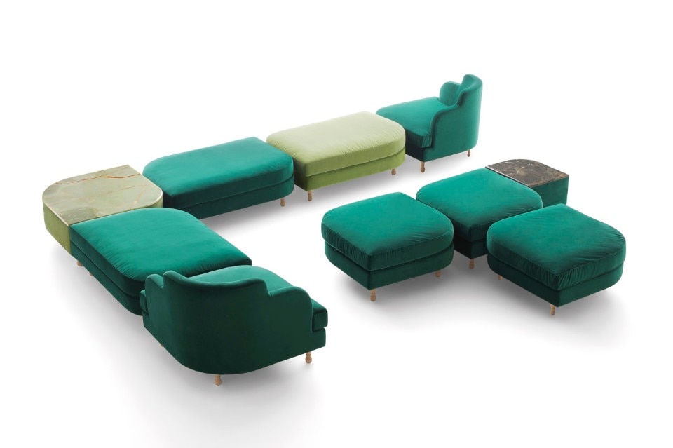 Delice is a design proposal created for hotels and common areas that require comfortable furnishing. The peculiarity of this collection is the modularity of the single pieces that makes it suitable for the most varied uses. The upholstery is hand made with a solid wood structure and foam.