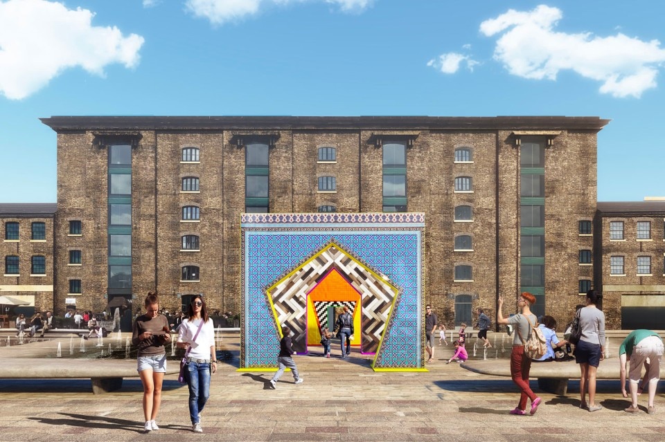 Top: Bloomon installation in Granary Square, Designjunction, London, 2017. Above: The ‘Gateways’ pavilion at Designjunction, designed by Adam Nathaniel Furman and