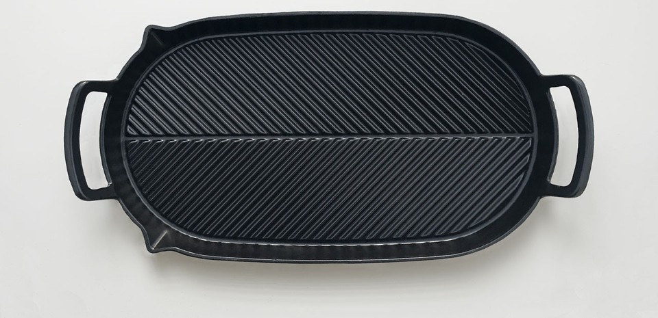 Herringbone focuses on progressive design, high-grade materials and enduring, handcrafted production methods. The Herringbone pattern grill lines channel cooking juices to either of the two pouring spouts. Herringbone will be available from early October.