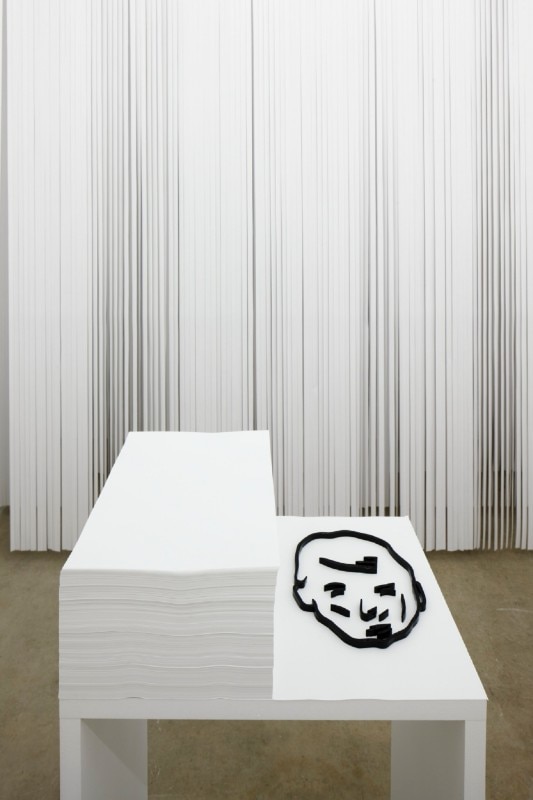 At Kim?, in Maija Kurševa’s latest exhibition the emphasis is put on the spatial experience that draws and guides the viewer into an associative tale that relies both on observation and suspicion that a set of artworks possess an idea. Whilst capturing real and imaginary reflections, the link is formed between ostensible idleness and the notion of the creative process, between ‘the narrative of the absurd’ or eventually ‘causes and conclusions’, bringing together everything that adheres to an investigation.