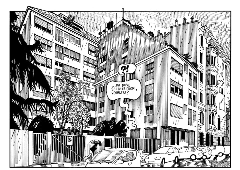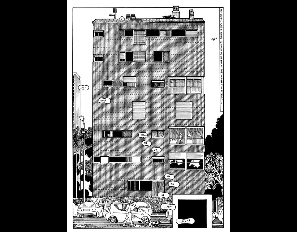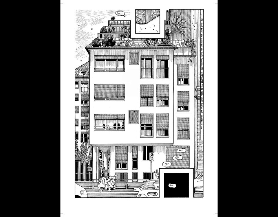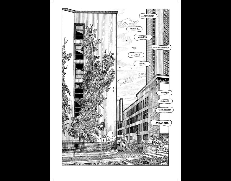 In the comics of Paolo Bacilieri, architecture is often a support to the story itself. But with Tramezzino the real protagonists become the buildings of Modern Milan – Magistretti, Ponti, Caccia Dominioni – drawn with a personal touch and photographic precision.